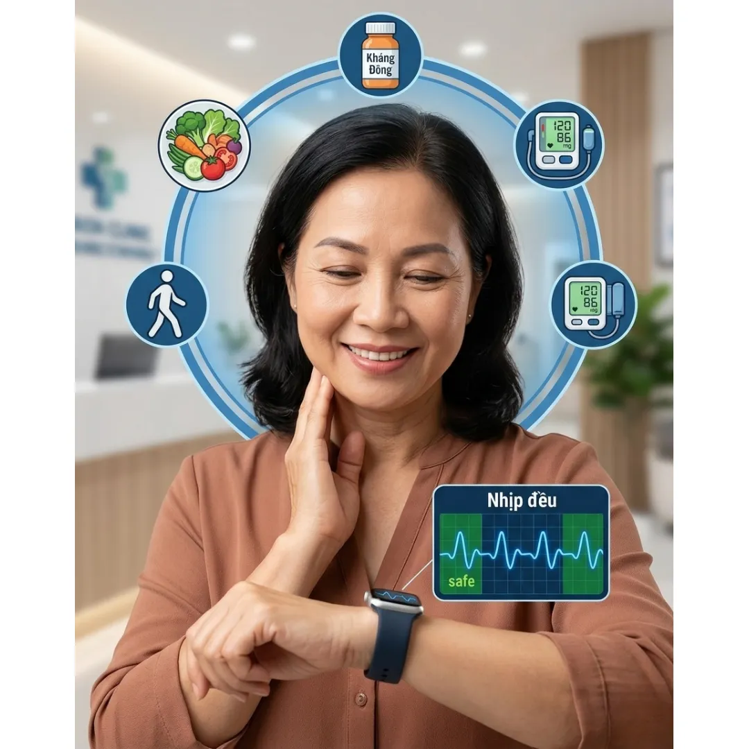 Kiểm soát các "đồng phạm": Huyết áp cao, tiểu đường và béo phì là những kẻ tiếp tay cho rung nhĩ. Kiểm soát tốt chúng chính là chặt đứt vòi bạch tuộc của bệnh tật.